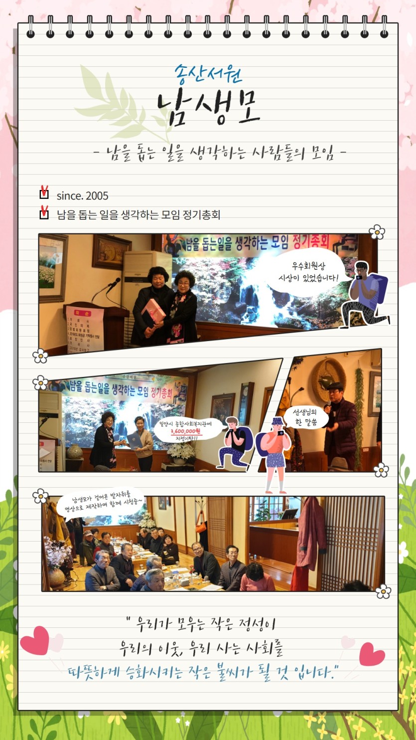 복지관 어르신정보화교실 어르신들이 남을 돕는 일을 생각하는 모임을 만들어 지역내 어려운 이웃에 정기적인 후원을 하고 계십니다.