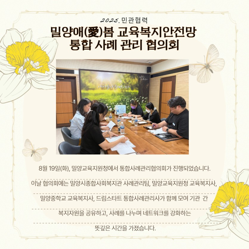 2025년 민관협력 - 통합사례관리협의회 게시글 작성정보 작성자 밀양시종합사회복지관 작성일 25-08-25 14:08 조회수 451 댓글수 0 목록 게시글 본문 첨부파일 1개 0819교육지원청손지우.jpg (1.2M) 3회 다운로드 첨부일시 : 2025-08-25 14:16:15 이전글 [누구나수선소-마을수리수선학교] 도깨비 공방 선생님께 기초 목공과 공구 사용법을 배우다! 25-08-25 다음글 경주 시민분들 기관방문을 환영합니다! 25-08-13 댓글 0 등록된 댓글이 없습니다. 목록
