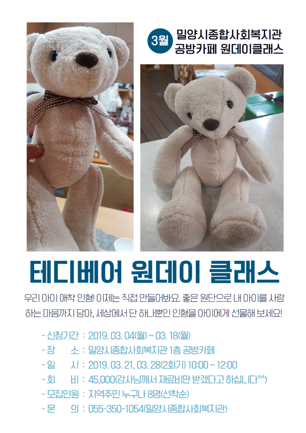 [모집]공방카페 테디베어 원데이 클래스(3월)